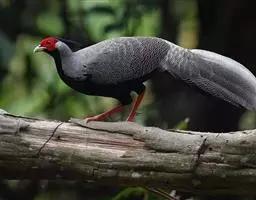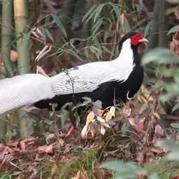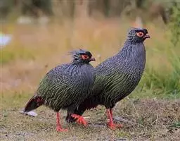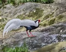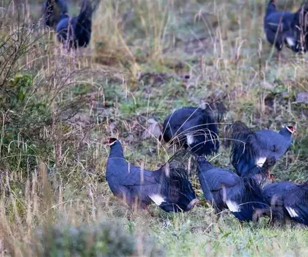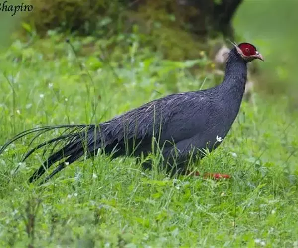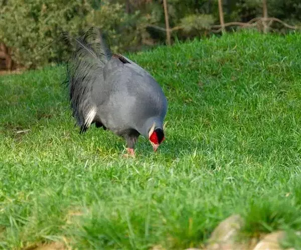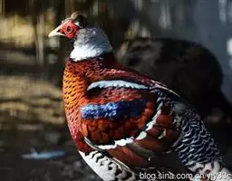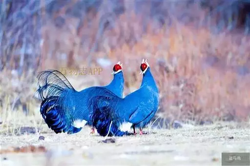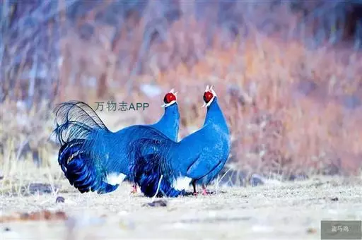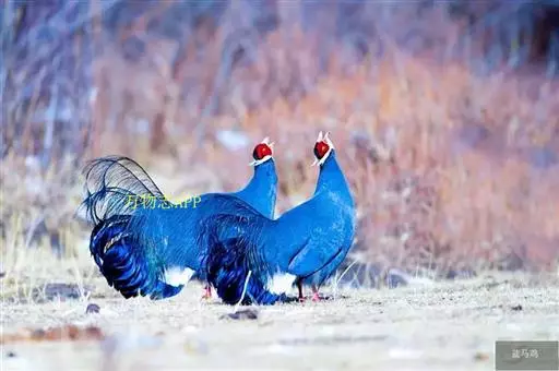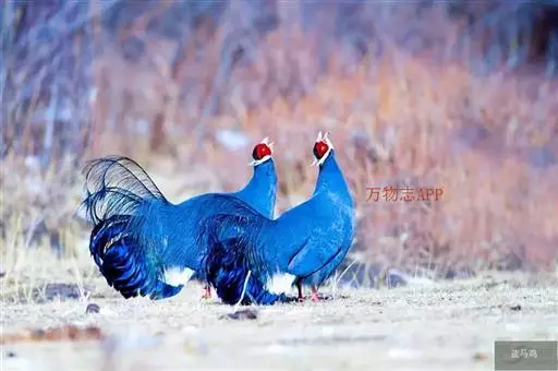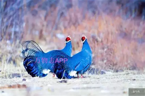 蓝马鸡(学名:Crossoptilon auritum)是珍稀名贵的禽类,羽毛美丽,可作装饰用,头侧绯红,耳羽簇白色、突出于颈部顶上,通体蓝灰色,中央尾羽特长而翘起。尾羽披散下垂如马尾,故名蓝马鸡。