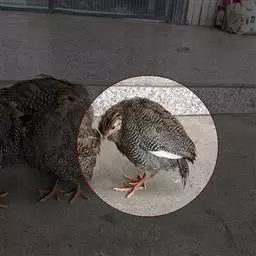 刚出壳的蓝马鸡羽毛松散如丝,嘴肉红色,虹膜黑褐色,额、脸淡棕色,耳羽前部淡棕、后部黑色,头顶棕白色,背部有二条不明显的淡色纵纹。胸、腹灰白色。脚肉色。