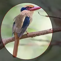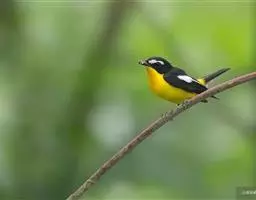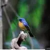 山蓝仙鹟:小型鸟类,体长13-15厘米。雄鸟额基和眼先黑色,颏橙棕色,仅颏尖为蓝黑色,…
