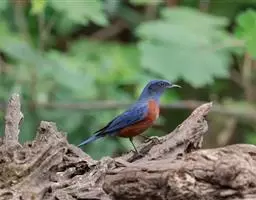 赭红尾鸲:小型鸟类,体长13-16厘米。雄鸟前额、头侧、颈侧、颏至胸概黑色,头顶和背灰色或黑色,…