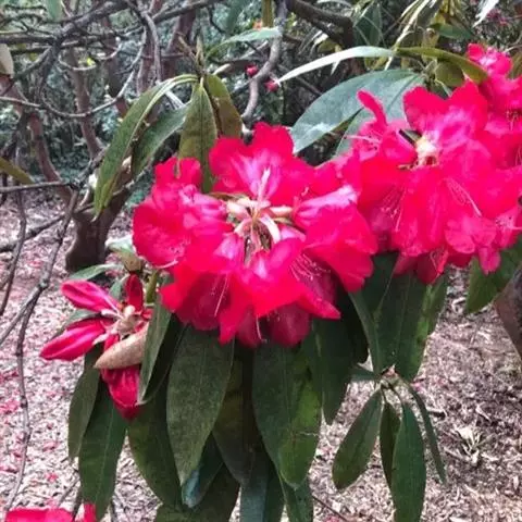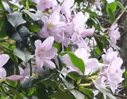 团叶杜鹃:常绿灌木,稀小乔木,高1-4.5米,稀达15米;树皮褐色;幼枝绿色,无毛,老枝黄褐色。顶…