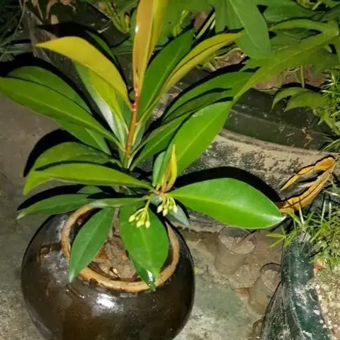 密鳞紫金牛(A. densilepidotulaMerr.)是这个类群里具有较高观赏价值的一种,也是著名的药用植物。晚春时节,一树繁花、赏心悦目;时至初秋则满身紫果,别有一番韵味。为紫金牛科紫金牛属小乔木,原产海南岛,因花、果、叶均密被鳞片而得名,别名:罗芒树,山马皮,黑度,仙人血树等。其株高2米左右,小枝粗壮,皮粗糙;叶片革质,卵形;圆锥状花序顶生;圆形的小花粉红泛紫,盛花期时呈波浪式悬挂着,密密麻麻、层层叠叠、热闹非凡,花期可长达2月;果期则变成挂满小小的球果,颜色由青绿慢慢变红,再至紫黑。自始至终都是凝焦聚目,惹人喜爱。除了这一树繁花、满身硕果的美,其树皮还可入药,有养血化瘀之功效。