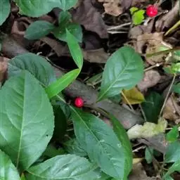 紫金牛 Blume)是报春花科紫金牛属常绿小灌木植物。近蔓生,茎幼时被细微柔毛,后无毛;叶对生或轮生,…