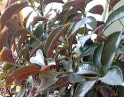 小乔木,高6-8 (-15)米;小枝粗壮,皮粗糙,幼时被秀色鳞片。叶片革质,倒卵形或广倒披针形,顶端钝急尖或广急尖,基部楔形,下延,长11-17厘米,宽4-6厘米,有时长达23厘米,宽8.5厘米,全缘,常反折,叶面平整,侧脉微隆起,中脉微凹,背面密被鳞片,中脉明显,隆起,侧脉多数,微隆起,连成近边缘的边缘脉,无腺点;叶柄长约1厘米,具狭翅和沟。由多回亚伞形花序组成的圆锥花序,顶生或近顶生,长10-14厘米,被鳞片;花梗长3-8毫米,被鳞片;花长约3毫米,花萼基部连合,萼片狭三角状卵形或披针形,顶端急尖,长1-1.5毫米,具缘毛,无腺点,稀具腺点,无毛;花瓣粉红色至紫红色,卵形,顶端钝,长约3毫米,无腺点,无毛;雄蕊与花瓣几等长,花药卵形,顶端细尖,无腺点;雌蕊与花瓣等长或略长,子房卵珠形,无毛;胚珠约14枚,1轮。果球形,直径约6毫米,紫红色至紫黑色,无腺点。花期6-7 (-8) 月,有时达2月。