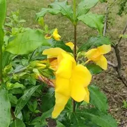 大花软枝黄蝉是软枝黄蝉的一个变种,夹竹桃科黄蝉属植物。藤状灌木,长达4米,枝条软弯垂,具白色乳汁。…