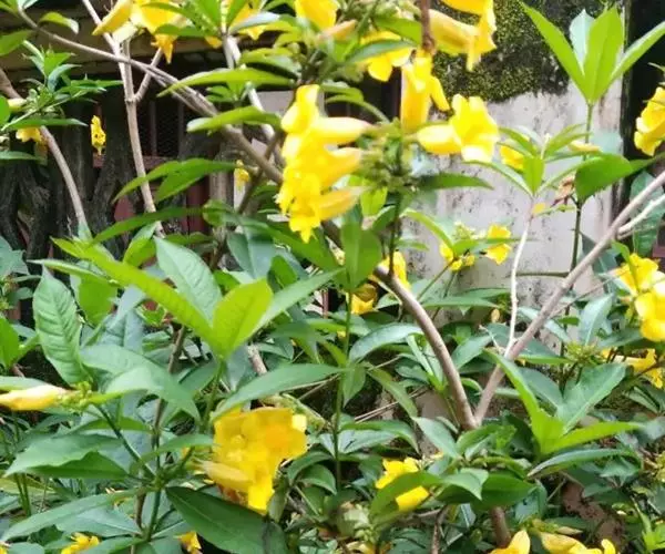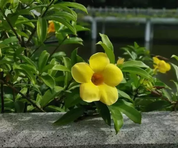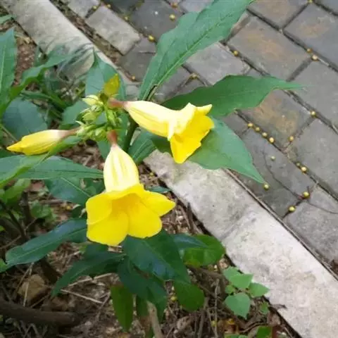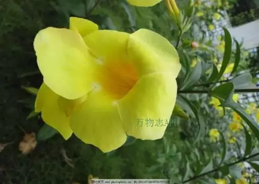 黄蝉属,夹竹桃科,约15种,分布于热带美洲,中国引入栽培的有黄蝉A. neriifolia Hoo…