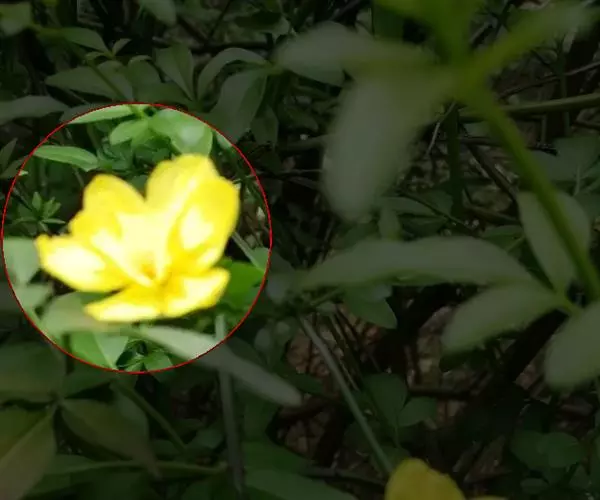 黄蝉是直立灌木植物,高1-2米,具乳汁;枝条灰白色。叶3-5枚轮生,全缘,椭圆形或倒卵状长圆形,长6-12厘米,宽2-4厘米,先端渐尖或急尖,基部楔形,叶面深绿色,叶背浅绿色,除叶背中脉和侧脉被短柔毛外,其余无毛;叶脉在叶面扁平,在叶背凸起,侧脉每边7-12条,未达边缘即行网结;叶柄极短,基部及腋间具腺体。