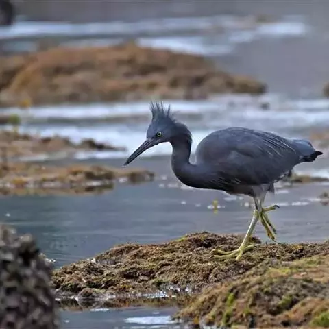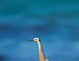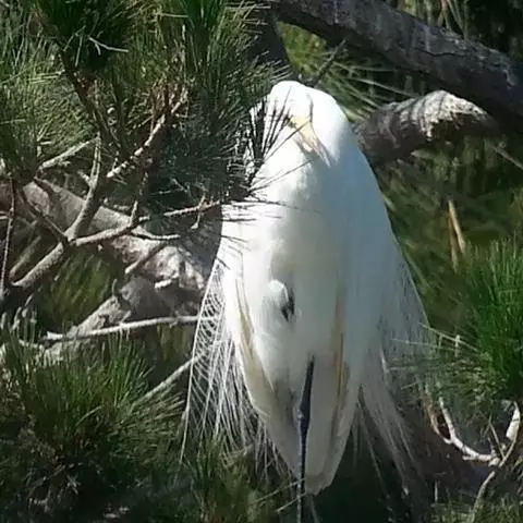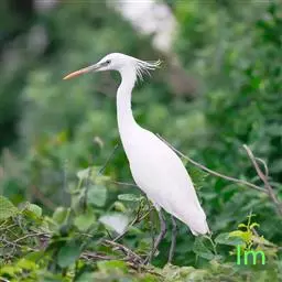描述:中等体型(60厘米)的白色鹭。与牛背鹭的区别在体型较大而纤瘦,嘴及腿黑色,趾黄色,繁殖羽纯白,颈背具细长饰羽,背及胸具蓑状羽。