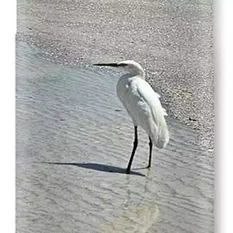 体长60~70厘米;全身白色,眼先黄色,虹膜淡黄色,脚和址黑色;繁殖羽背部和前颈下部有蓑状饰羽,头后有不甚明显的冠羽,嘴黑色。栖息和活动于河流、湖泊、水稻田、海边和水塘岸边浅水处。常单独、成对或成小群活动,有时亦与其他鹭混群。生性胆小,很远见人即飞。飞行时颈缩成“S”形,两脚直伸向后,超出于尾外,两翅鼓动缓慢,飞行从容不迫,且成直线飞行。主要以小鱼、虾、蛙、蝗虫、蝼蛄等动物为食。中白鹭在我国南方为夏候鸟,亦有部分留下越冬。