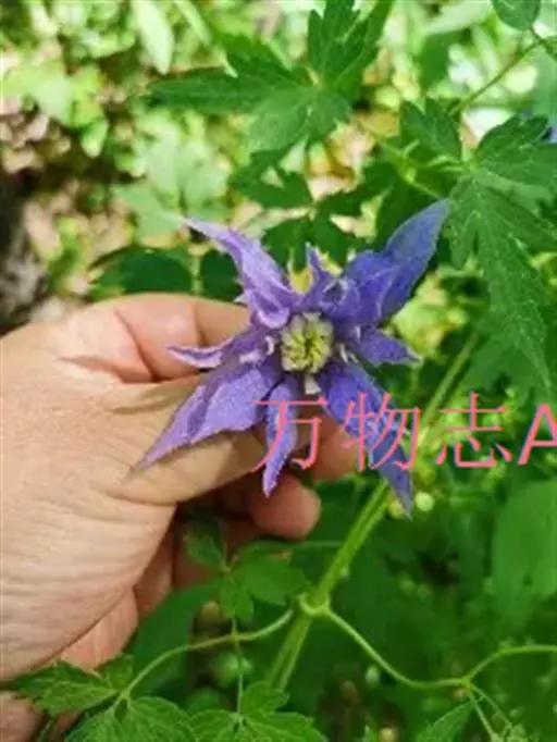 该种有二回三出复叶,与半钟铁线莲相近,区别在于该种退化雄蕊成线状披针形,与萼片等长。