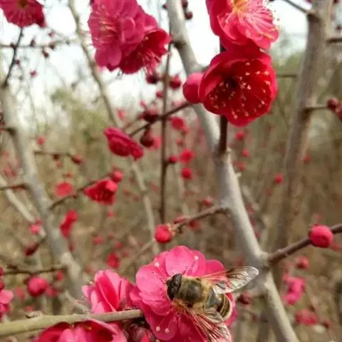 朱砂梅,俗称骨里红,为真梅系直脚梅类,枝条直伸或斜展,不下垂成拱形也不弯曲。属蔷薇科李属植物,…