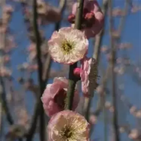 宫粉梅 Rehd.)是蔷薇科、李属植物,梅花品系中真梅系直枝梅类宫粉型,其花复瓣至重瓣,…