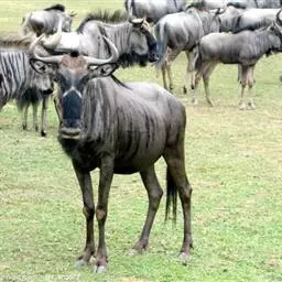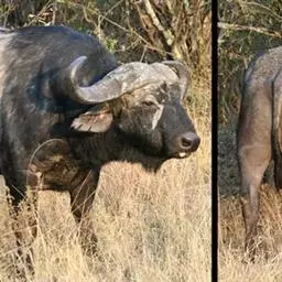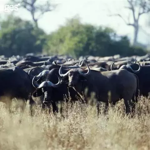 非洲野水牛:共有5个亚种。头体长2.1-3.4米,身高1-1.7米,体重300-900千克。胸膛宽…