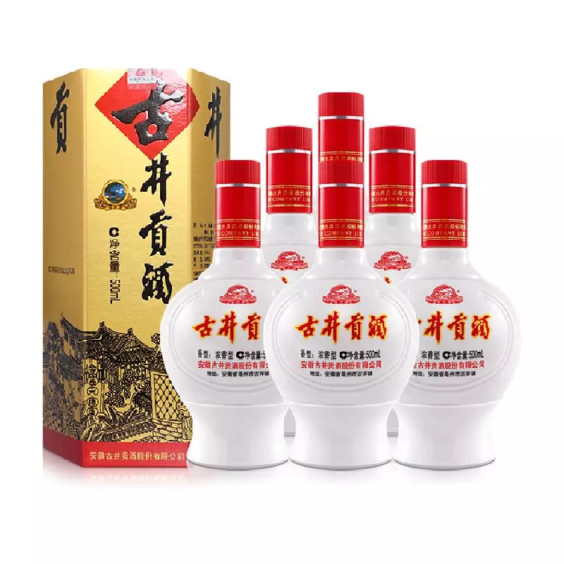 古井贡酒,属于浓香型白酒,具有“色清如水晶,香醇如幽兰,入口甘美醇和,回昧经久不息”的特点。它以安徽淮北平原优质小麦、古井镇优质地下水以及颗粒饱满、糯性强的优质高梁为原料,并在亳州市古井镇特定区域范围内,利用其自然微生物环境,按古井贡酒传统工艺生产而成。古井贡酒呈香、呈味的酯类物质,在种类和含量上普遍多于其他浓香型大曲酒。通过目前的定量分析,古井贡酒含有80多种香味物质,比其他浓香型酒多15~30种,并且这些香味物质的含量是其他浓香型酒的2~3倍。同时,在古井贡酒中还拥有一个完整的有机酸丙酯系列,这是其他浓香型大曲酒所没有的。