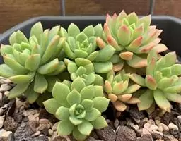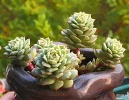 女雏是景天科石莲花属的多肉植物。特征是小巧的株形和橙粉色叶缘。极易生侧芽,…