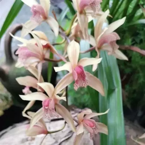 建兰素花,绿白色,清香,一枝开花5至12朵。叶色钢青,细而挺拔,有铮铮铁骨之相,所以叫铁骨素。在日…
