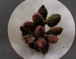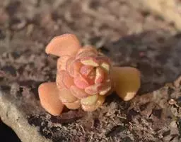叶子表面宽厚,富肉质感且带有磨纱质感,看像石头质地;开红色小花,生于植株顶部,倒伞形密生,形状像花…