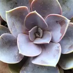 紫珍珠是景天科石莲花属的多年生肉质草本植物。植株中小型;叶片肉质,匙形,呈莲座状紧密排列;叶片粉紫色,…