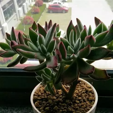 黑王子锦是景天科拟石莲花属的多年生肉质草本植物,是多肉植物的一种,为黑王子的锦化品种,较为稀有。