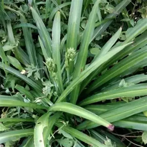 叶半圆柱状,干后不扭转;内轮花丝基部扩大,扩大部分为花丝长度的2/3 ,每侧 各具1齿;花丝略短于花被片(国内现无标本)。