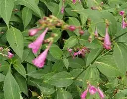花序顶生或腋生于上部叶腋,由2-8(10)聚伞花序组成,每个聚伞花序下托以2枚总苞状苞片,一大一小,卵形,几倒卵形,长1.5-2.5厘米,宽5-12毫米,顶端急尖,基部宽楔形或平截,全缘,近无毛,羽脉明显,内有1至少数花;花萼裂片为5,钻形,长约3毫米;花冠粉红色至微紫色,长2.5-3厘米,外疏生短柔毛,为2唇形,下唇为3裂;雄蕊为2,花丝细长,伸出,花药被长硬毛,2室叠生,一上一下,线形纵裂。