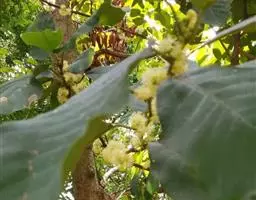 2、整地造林:对选好的造林地,第一年秋季要进行打穴备耕,穴规格为80厘米×80厘米×30厘米,每穴可施农家肥1~2担,栽植时要做到苗正根舒,踏实土,浇足定根水。初植密度可用1.5米×1.5米(每公顷4800株左右)或2米×1.5米(每公顷3300株左右)。进入盛果期后,应逐渐进行疏伐(主要是伐除雄株),最后每公顷保留1500~1800株左右。在疏伐时。要间隔适当距离保留一株做授粉树,一般每公顷保留120~150株雄株。