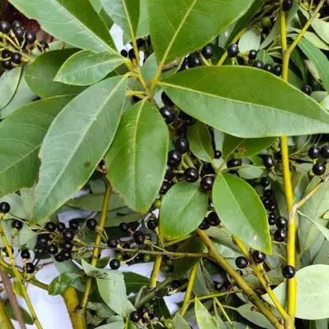 果近球形,直径约5毫米,无毛,幼时绿色,成熟时黑色,果梗长2-4毫米,先端稍增粗。