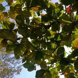 榄仁树(学名:Terminalia catappa L.)是使君子科诃子属植物,大乔木,高15米或更高,树皮褐黑色,纵裂而剥落状;枝平展,近顶部密被棕黄色的绒毛,具密而明显的叶痕。叶大,互生,常密集于枝顶,叶片倒卵形,长12-22厘米,宽8-15厘米。穗状花序长而纤细,腋生,长15-20厘米,雄花生于上部,两性花生于下部。果椭圆形,常稍压扁,具2棱,棱上具翅状的狭边,两端稍渐尖,果皮木质,坚硬,成熟时青黑色;种子一颗,含油质。花期3-6月,果期7-9月。