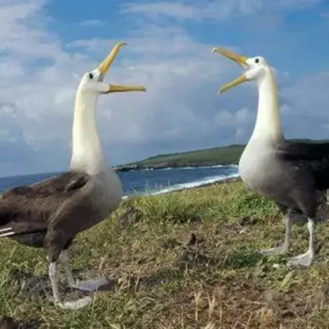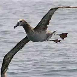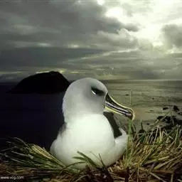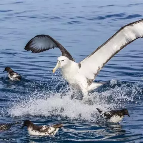 黑背信天翁:是一种中等体型的信天翁,81厘米长,体重2210-2800克,是一种有极长翼羽的大鸟,…