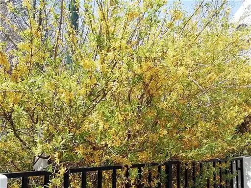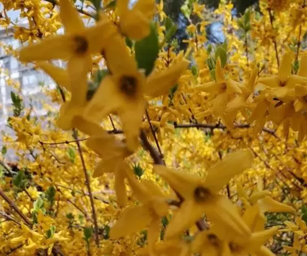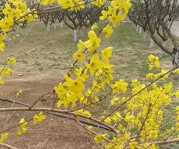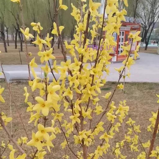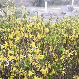 据公园的育花专家讲,连翘属名贵花木,往年均在阳春三月开花,可能由于植物花期后气候与开花的季节相似,导致植物内部规律发生紊乱,诱使连翘反季开花。“二次开花”竞相争艳,实属罕见。