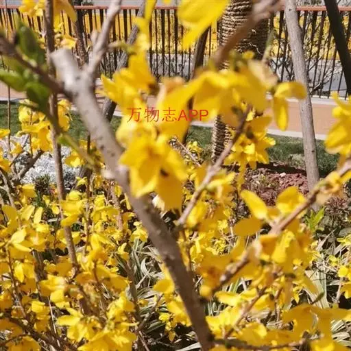 (1)迎春是木樨科茉莉属,植株外形呈灌木丛状,较矮小,枝条呈拱形、易下垂。连翘是木樨科连翘属,外形呈灌木或类乔木状,较高大,枝条不易下垂。