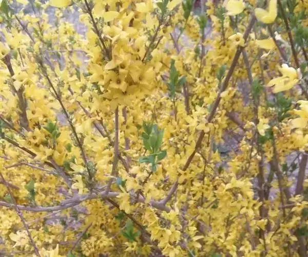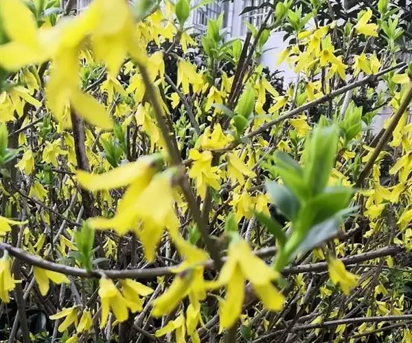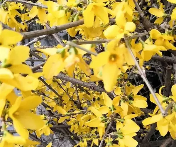 初春开花的连翘又在初冬二度绽放。在兴庆宫公园内,大片的连翘枝条翠绿,300株枝间朵朵嫩黄的连翘花,与初春相似迎着初冬飕飕寒风竞相绽放。