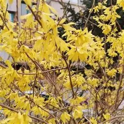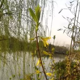 连翘(拉丁学名:Forsythia suspensa):是双子叶植物纲、捩花目、木樨科、连翘属落叶灌木。连翘早春先叶开花,花开香气淡艳,满枝金黄,艳丽可爱,是早春优良观花灌木,株高可达3米,枝干丛生,小枝黄色,拱形下垂,中空。叶对生,单叶或三小叶,卵形或卵状椭圆形,缘具齿。花冠黄色,1-3朵生于叶腋;果卵球形、卵状椭圆形或长椭圆形,先端喙状渐尖,表面疏生皮孔;果梗长0.7-1.5厘米。花期3-4月,果期7-9月。