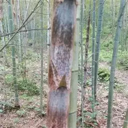 (2)镰刀菌喜欢生长在通气的酸性土壤,可结合冬季竹林抚育,在林中撒一薄层石灰,每667m2撒100kg,改变酸性,并覆盖10cm左右厚的黄心土能起一定抑制作用。根据病害发生规律,在孢子传播期,喷多菌灵等农药,可防止紫病斑扩散。