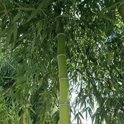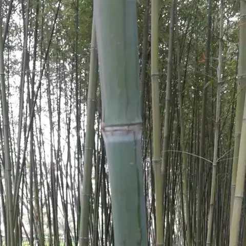刚竹 秆高10-15米、径8-10厘米,淡绿色。枝下各节无芽,秆环平,但分枝各节则隆起。全秆各节箨环均突起,新竹无毛,微被白粉;老竹仅节下有白粉环。节间具猪皮状皮孔区,秆箨密布褐色斑点或斑块,先端截平,边缘具较粗须毛,无箨耳和繸毛。箨舌紫绿色,箨叶带状披针形,平直、下垂,每小枝有2-6片叶,披针形,翠绿色至冬季转黄色。盛笋期5月中旬,生笋味微苦,熟笋无苦味,味淡供食用。