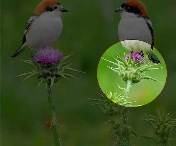 头状花序较大,生枝端,植株含多数头状花序,但不形成明显的花序式排列。总苞球形或卵球形,直径3-5厘米。总苞片6层,中外层宽匙形,椭圆形、长菱形至披针形,包括顶端针刺长1-3厘米,包括边缘针刺宽达1.2厘米,基部或下部或大部紧贴,边缘无针刺,上部扩大成圆形、三角形、近菱形或三角形的坚硬的叶质附属物,附属物边缘或基部有坚硬的针刺,每侧针刺4-12个,长1-2毫米,附属物顶端有长达5毫米的针刺;内层苞片线状披针形,长约2.7厘米,宽4厘米,边缘无针刺,上部无叶质附属物,顶端渐尖。全部苞片无毛,中外层苞片质地坚硬,革质。小花红紫色,少有白色,长3厘米,细管部长2.1厘米,檐部5裂,裂片长6毫米。花丝短而宽,上部分离,下部由于被粘质柔毛而粘合。