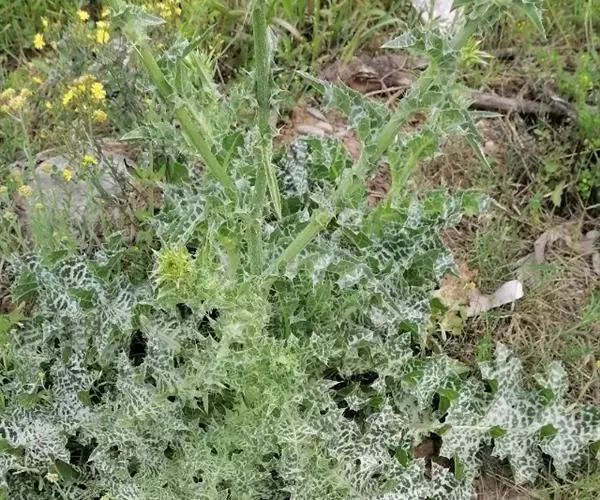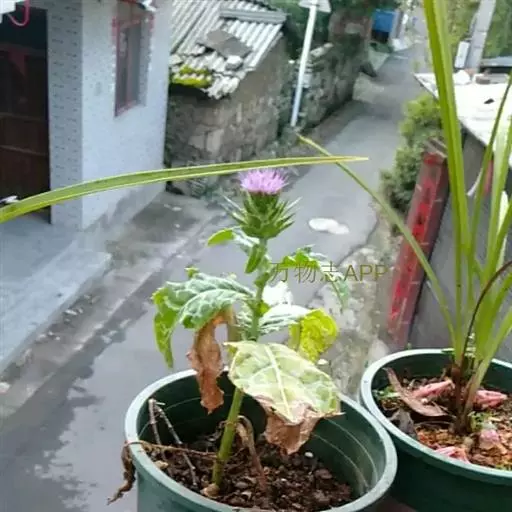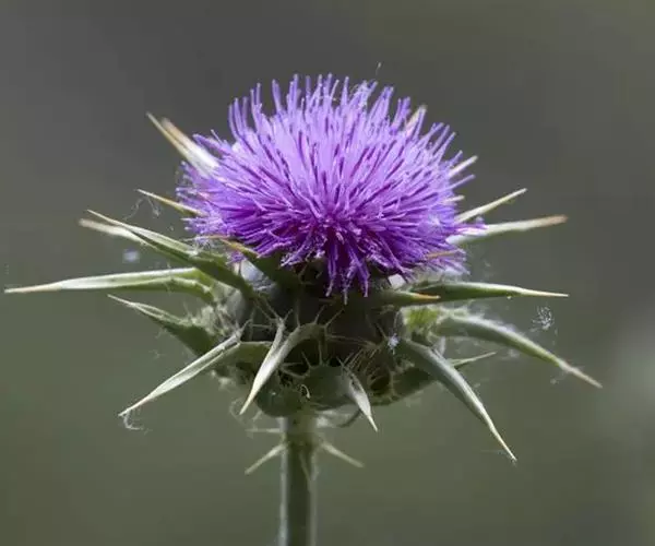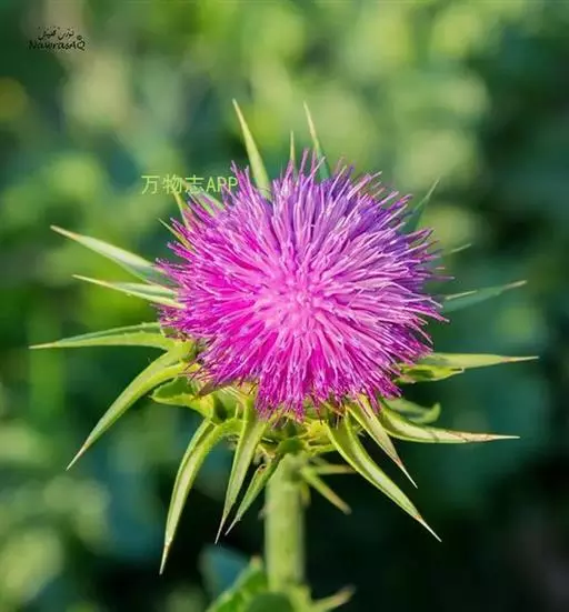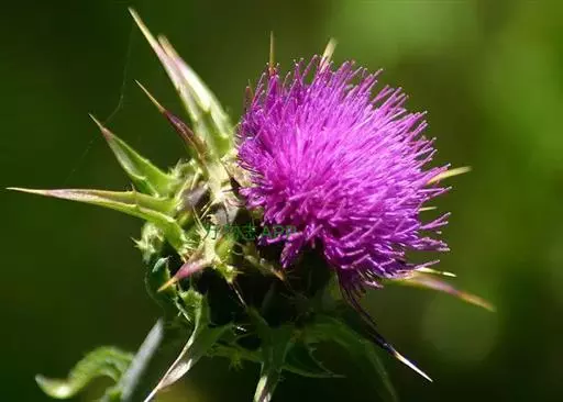 水飞蓟(学名:Silybum marianum (L.) Gaertn.)是菊科,水飞蓟属一年生或二年生草本植物,高可达1.2米。茎直立,有条棱,极少不分枝,叶片两面同色,绿色,有白色花斑,质地薄,头状花序较大,总苞片中外层宽匙形,椭圆形、长菱形至披针形,苞片无毛,中外层苞片质地坚硬,革质。小花红紫色,少有白色,花丝短而宽,瘦果压扁,冠毛多层,刚毛状,白色,5-10月开花结果。