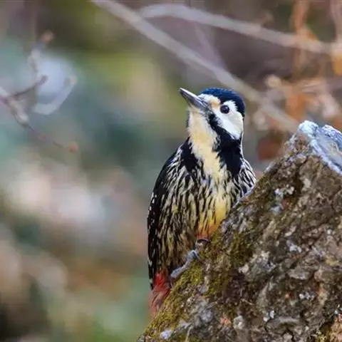 大斑啄木鸟隶属鸟纲鴷形目啄木鸟科。雄鸟头顶黑色,枕部红色,眼先、颊部和耳羽白色,颈部污白色,…