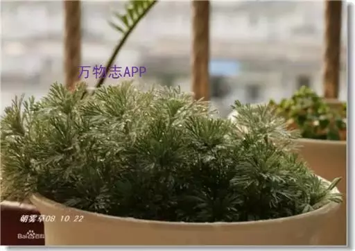 朝雾草主要欣赏其全株银白色光泽及羽毛状的茎和叶,姿态纤细、柔软,给人以一种玲珑剔透的美感。