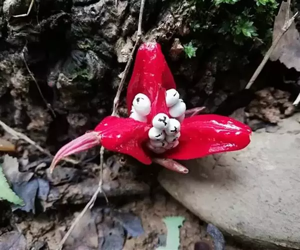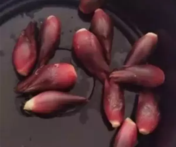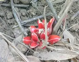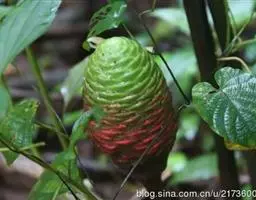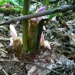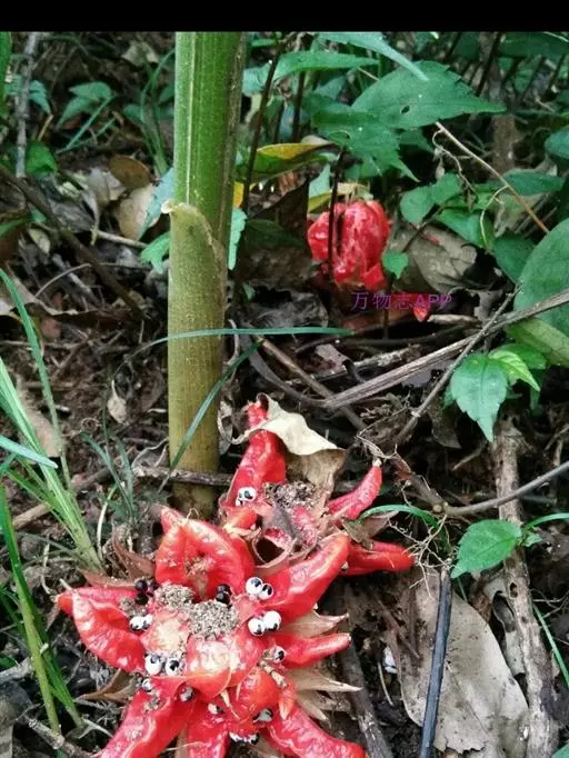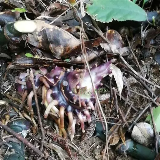 在春日和炎夏,碧叶婆娑,葳蕤成丛。每当秋风萧瑟、百花纷谢时节,其根茎处便会涌现出硕大的紫红色蕾果,开裂时妖艳妩媚、芬芳怡人,犹如奇花绽放。