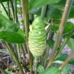 珊瑚姜是姜科、姜属植物。株高近1米。叶片长圆状披针形或披针形,长20-30厘米,宽4-6厘米,…