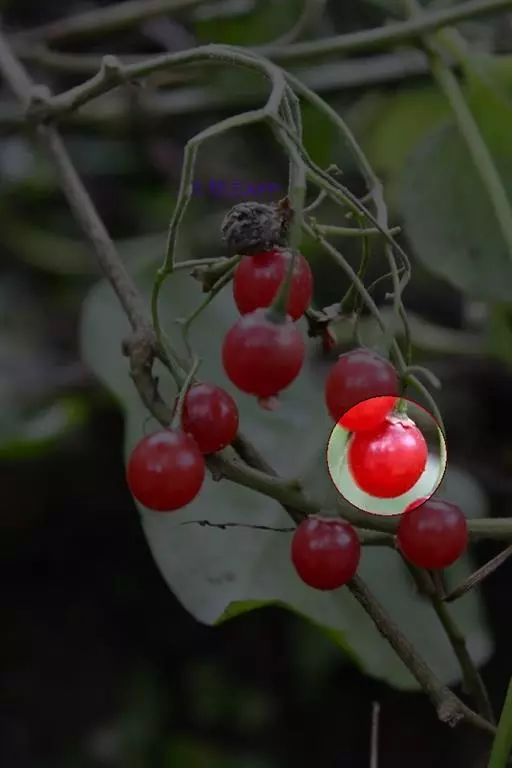 浆果球形,直径5-10毫米,鲜红色。花期6-7月,果期8-9月。
