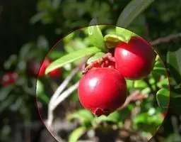 越桔(学名:Vaccinium vitis-idaea Linn.):是杜鹃花科植物,原产北美,常绿矮小灌木。多生于高山苔原带、单叶互生,叶片倒卵形,有2-8朵花,苞片红色,宽卵形,花冠白色或淡红色,钟状,长约5毫米,4裂,花丝很短,有微毛,花柱稍超出花冠。浆果球形,直径5-10毫米,鲜红色。花期6-7月,果期8-9月。