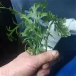 主茎通体呈不是很规则的羽状分枝,不呈“之”字形,具关节,禾秆色,主茎下部直径0.6-1.2毫米,茎近四棱柱形或具沟槽,维管束2条;侧枝10-20对,像主茎2-3回羽状分枝,小一样发达,枝排列稀疏,不规则,主茎上相邻分枝相距2-5厘米,分枝无毛,背腹压扁,末回分枝连叶宽3-6毫米。