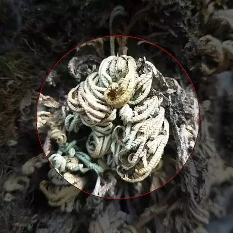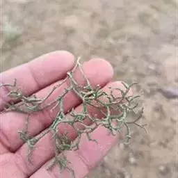 根托沿匍匐茎和枝断续生长,由茎枝的分叉处上面生出,长5-13厘米,纤细,直径0.1藓一0.2毫米,近无毛。