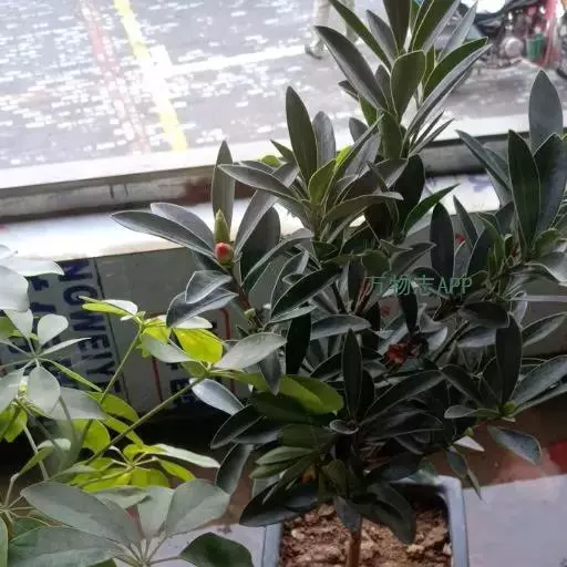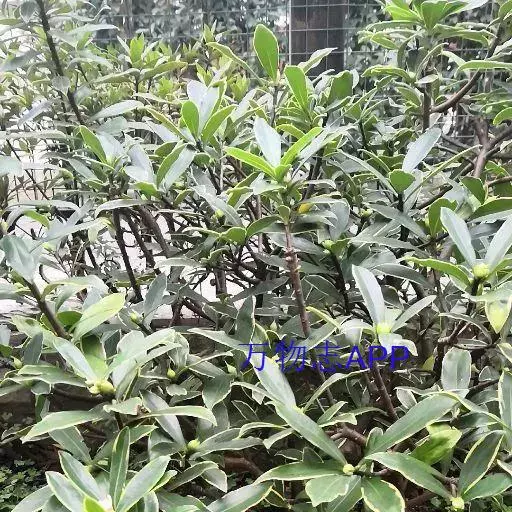 毛瑞香(var.atrocaulis Rehd) :又叫八爪金龙。花被外侧有灰黄色的绢毛,花朵白色,芬芳;果熟时橙色;枝深紫色。