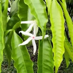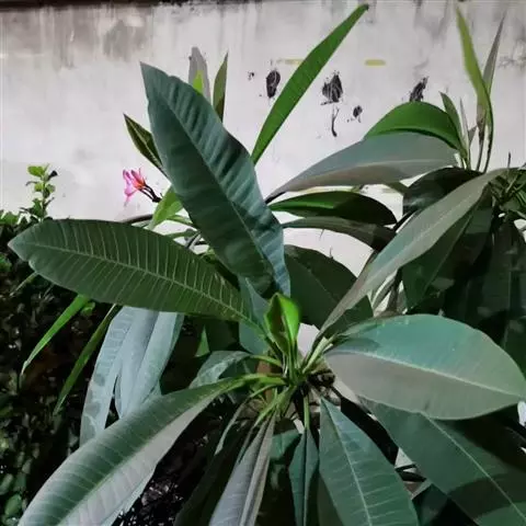 落叶小乔木,原产巴拿马、哥伦比亚、委内瑞拉。株高 2-4 公尺,全株枝叶光滑;枝干直挺生长,嫩枝绿色,成熟枝灰色;枝条圆筒形,粗壮而带肉质,无毛,具丰富乳汁,落叶后具明显叶痕。其树姿屹立傲然,有别于寻常缅栀的圆伞型树冠,叶片戟形或匙形,顶端短渐尖或突尖,花大而白,多而锦簇。