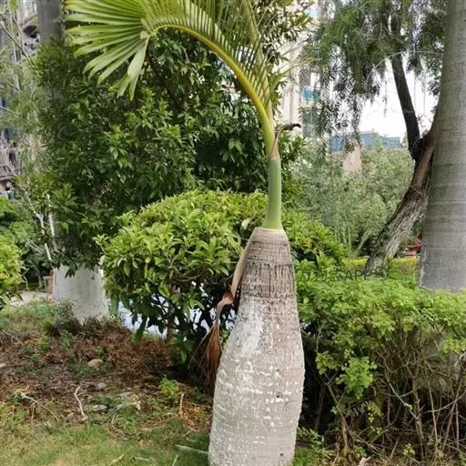 羽状叶,拱形,旋转,整齐排列成2列,在基部侧向扭转而使羽片叶面与叶轴所在平面成45°,形成优美的叶冠茎,特别是其茎干光滑而中下部膨大,形似酒瓶,更具观赏价值。不论室内盆栽,还是庭院栽培都是优良的观赏绿化树种。