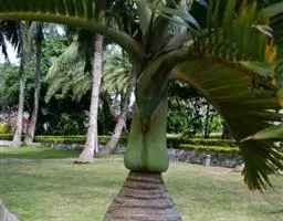 酒瓶椰(学名:Hyophorbe lagenicaulis (L. H. Bailey) H. E. Moore)是棕榈科椰子属植物,单干,树干短,肥似酒瓶,树高可达3米以上,胸径达38-60厘米。羽状复叶,叶长1.8-2.2米,小叶披针形,中脉和侧脉凸起。叶柄淡红色,没有黄色的条纹。雌雄同株,花柄长60厘米,佛焰苞柔软,长60厘米。果长表面粗糙,形状不规则,种子小而扁平。呈球状,长约1.3厘米。