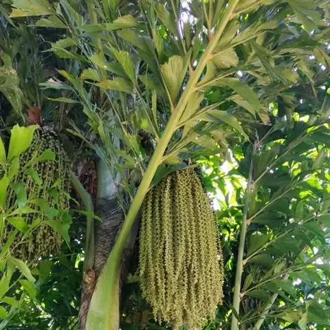 糖棕是棕榈科,糖棕属植株粗壮高大,乔木状植物。高可达33米,直径最粗可达90厘米。叶大型,掌状分裂…